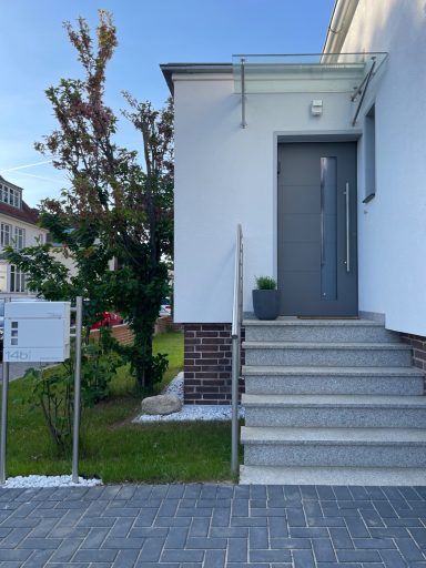 Der offene Eingangsbereich heißt Dich herzlich willkommen, umgeben von einer harmonischen Mischung aus Bestandspflanzen und neuen Bepflanzungen, die 2025 gesetzt wurden. Gut sichtbar am Eingang befindet sich ein Schlüsseltresor, der jederzeit ein unkompliziertes Ankommen ermöglicht – für maximale Flexibilität und Unabhängigkeit.