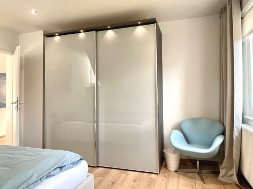 Im Master Bedroom erwartet Dich ein komfortables Doppelbett (2,00 x 2,00 m), ein beleuchteter Kleiderschrank, eine stilvolle Kommode und ein ausgewählter Design-Sessel. Ein fein abgestimmtes, individuell für den Raum angefertigtes Kunstwerk setzt einen dezenten Akzent und verleiht dem Raum eine besondere Atmosphäre.