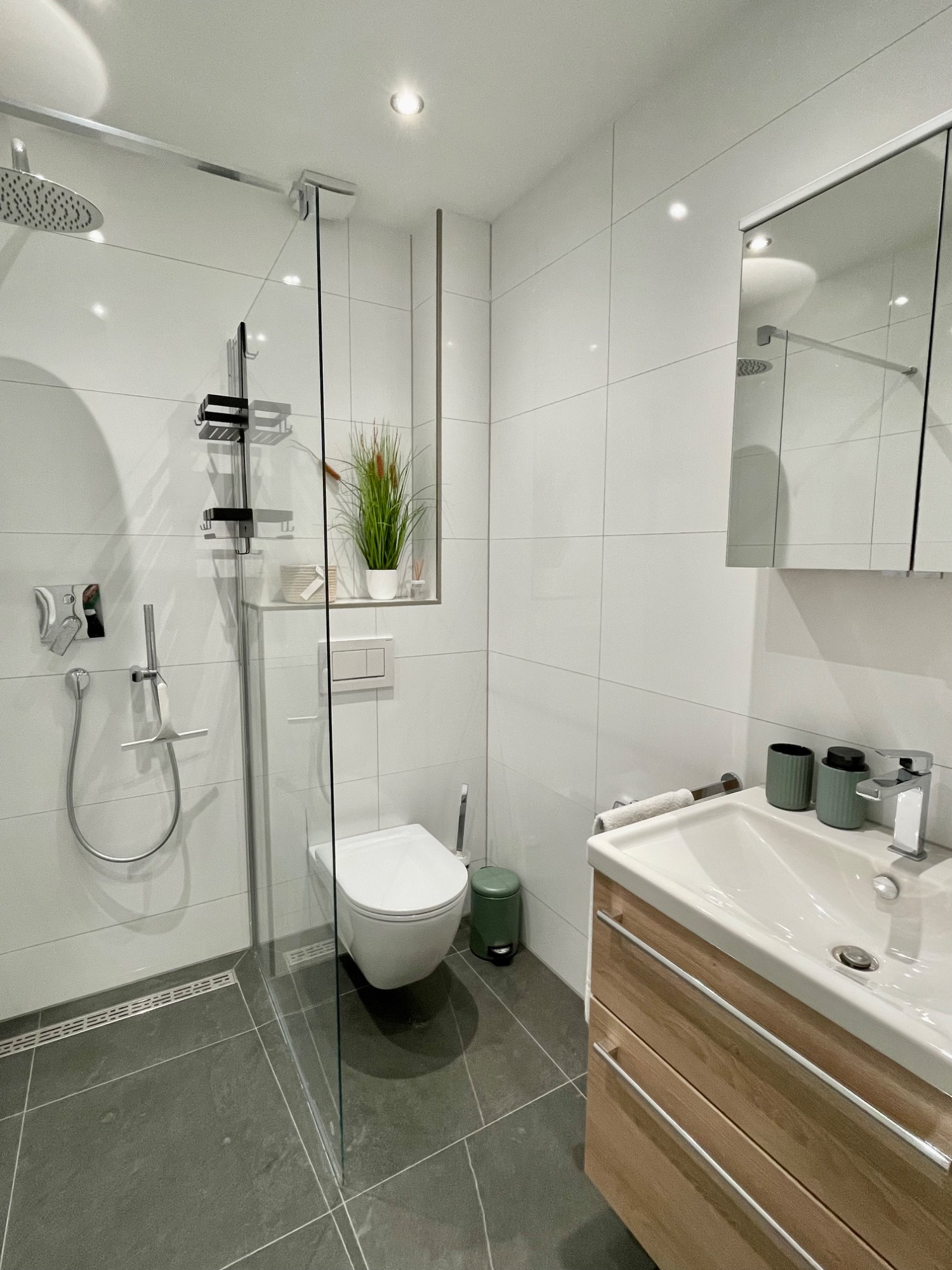 - Zwei moderne Bäder - eines mit bodentiefer Dusche, eines mit gemütlicher Wanne